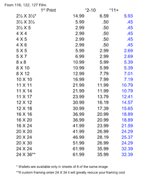 PRINTS FROM 4x5, 5x7, 8x10 NEGATIVES AND TRANSPARENCIES