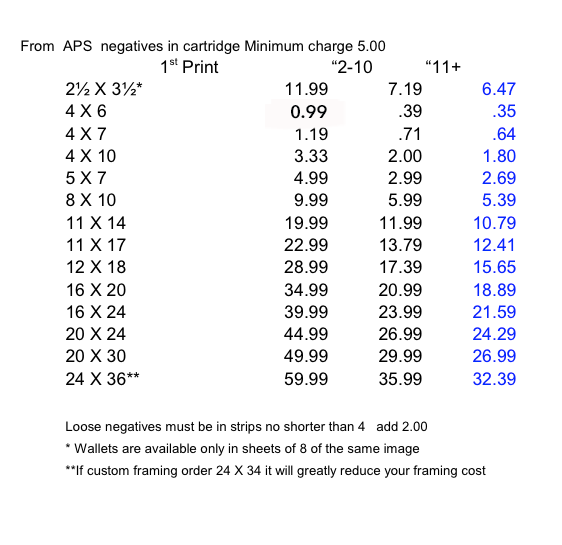 PRINTS FROM 4x5, 5x7, 8x10 NEGATIVES AND TRANSPARENCIES